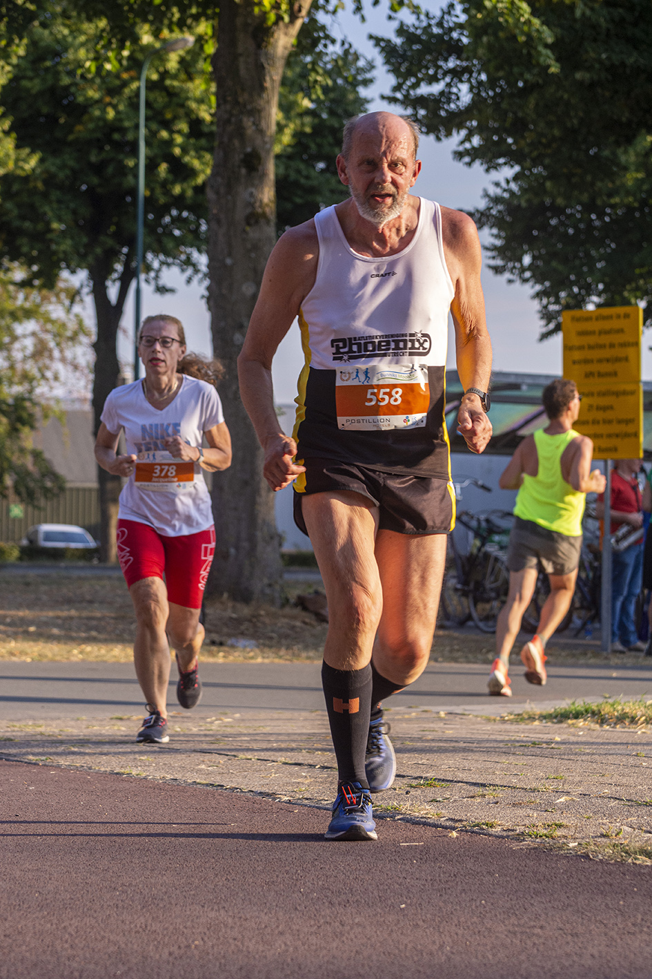 26°, voor het publiek zeer aangename temperaturen om aan te moedigen, voor de lopers reden om iets rustiger aan te doen. Behalve voor Bas Stigter, die nog even aanzette om toch dat parcoursrecord op zijn naam te zetten (38:37). 🔥👏 U-Track talent William Knol deed mee aan de 6km, en hoewel hij toch echt een 1500m specialist is, won hij met grote overmacht de 6km. Knap gedaan ook.