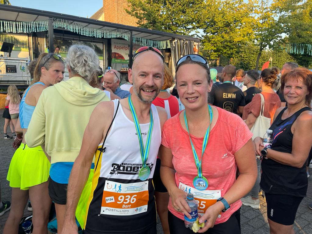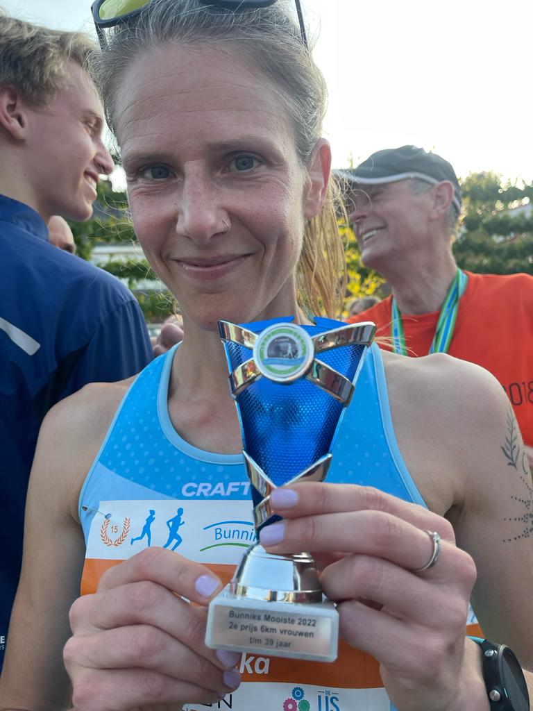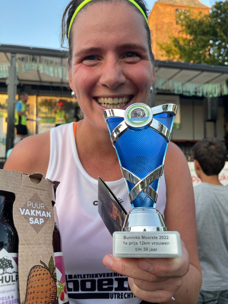 Voor de recreanten staat Bunniks Mooiste stevast op de agenda. Niet alleen vanwege de derde helft (dank weer voor de goede zorgen Marco & Martine), maar ook omdat ze hier vaak in de prijzen vallen. Mariska van Sprundel en Saskia van Vugt stonden vorig jaar samen op het podium bij de 12km. Dit jaar dacht Maris: laten we dat ook eens bij de 6km doen. Met plek 2 als resultaat. Volgend jaar plek 1 dus Maris 😉.