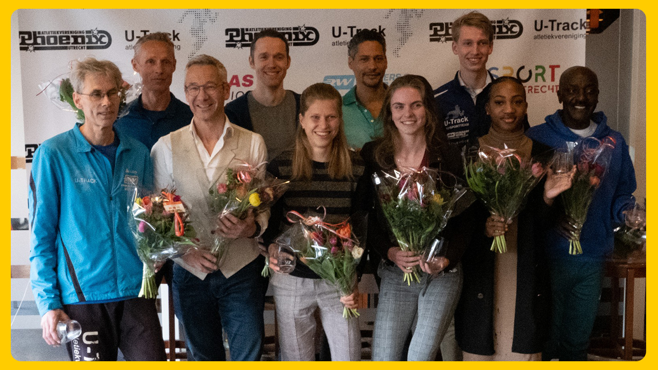 Het voorzitters-duo, Jaap en Eveline, dat de persconferentie aan elkaar praatte, eindigde de persco met een uitreiking van gegraveerde glazen en bloemen voor de atleten. En daarna: proosten op de winnaars. De eerste gezamenlijke U-Track & Phoenix persconferentie was een groot succes. Op naar de volgende #UPdate.
