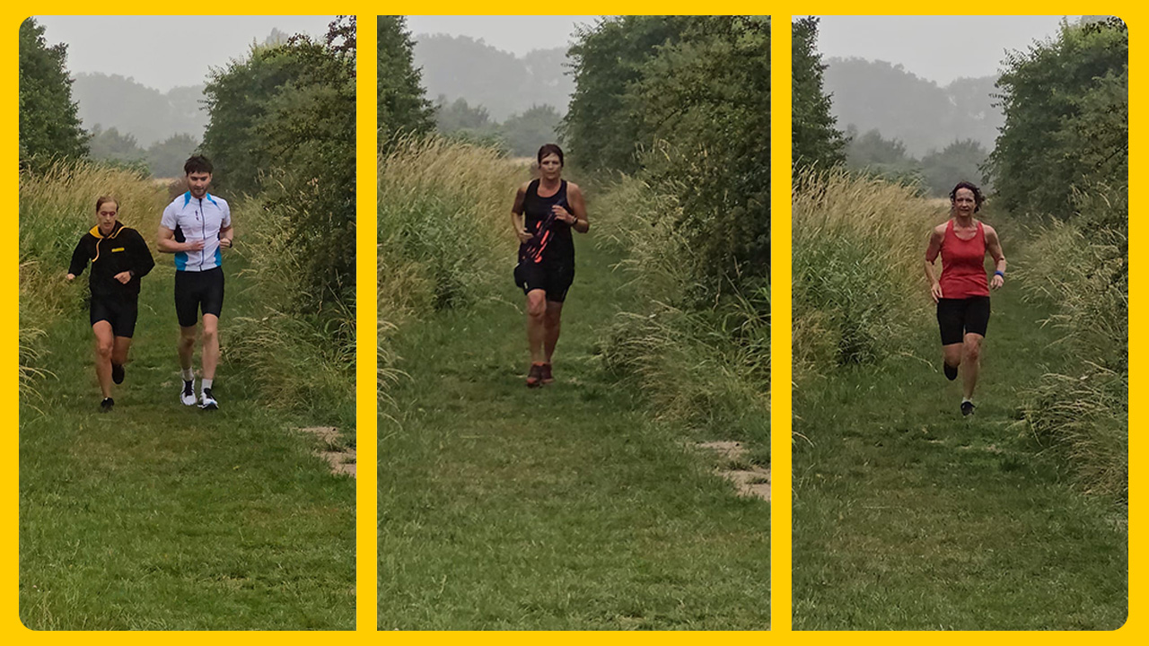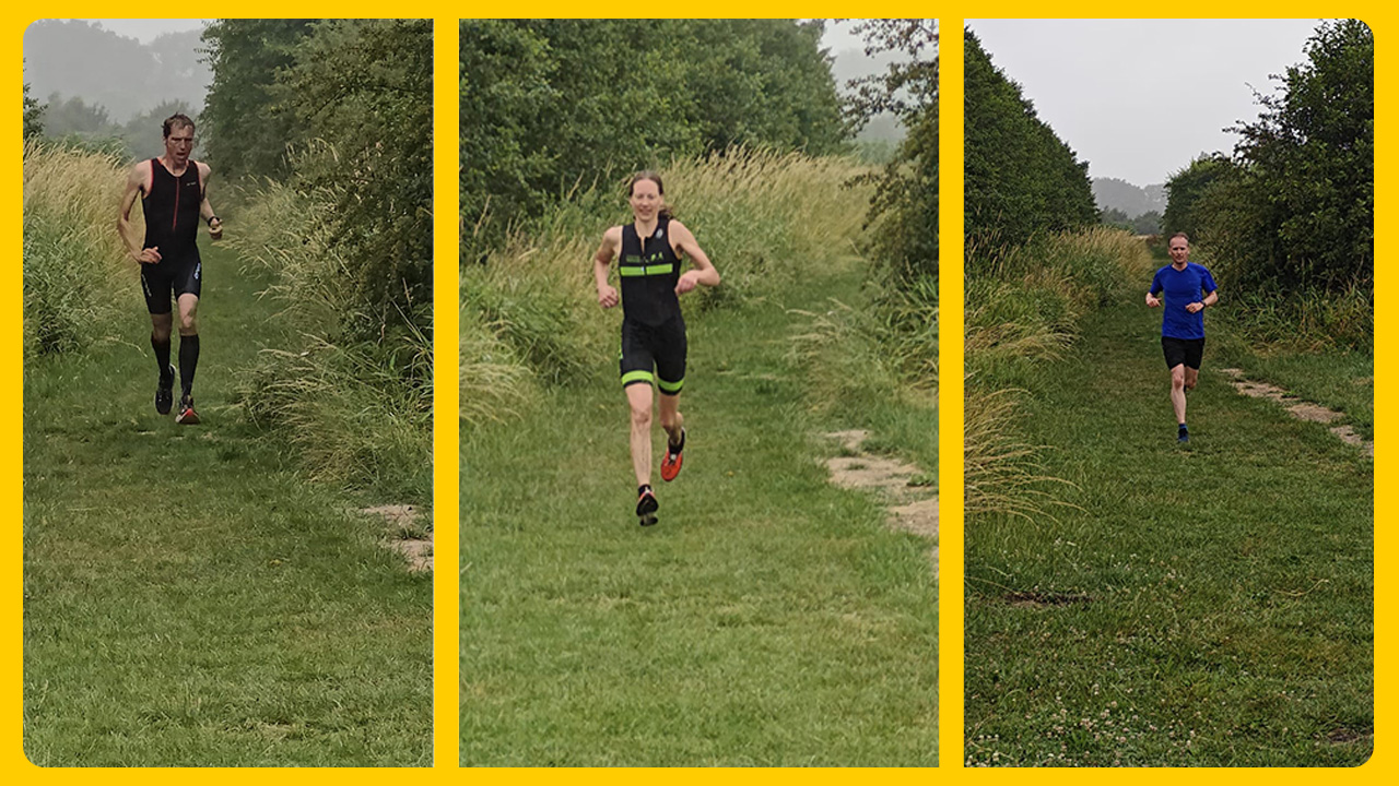 En tenslotte de run waarbij in ieder geval uiterlijk meer gelijkheid bestaat. Alhoewel, natuurlijk is Saskia bij alle onderdelen de snelste, maar dat compenseert ze gelukkig door veel met een altijd stralende lach gewoon 2 keer te doen en natuurlijk kwam loper Jasper (nadat zijn team door Richard bij het fietsen op achterstand was gezet) mij intimiderend snel voorbij…