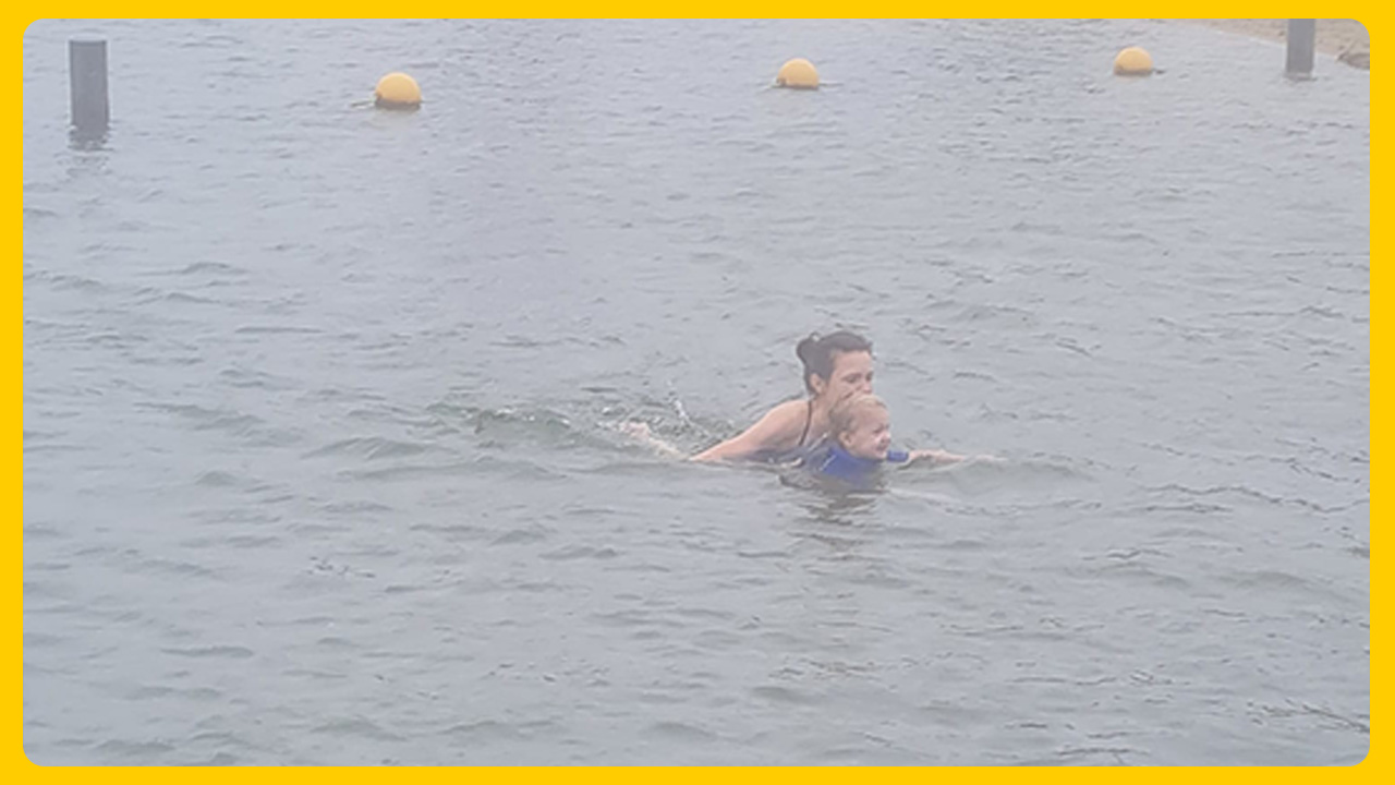 Er werd begonnen met onderdeel 1, dat was de swim en elk jaar weer hoor ik Jasper zeggen dat je eerst die (welke?, nou die) paal in het water moet aantikken en dan naar de pier daarachter moet zwemmen. Sta je teveel naar de zijkant op de startrij, ben je onervaren met de Phoenixiaanse startprocedures dan zie je pas welke paal precies als men er al naartoe rent of spartelt. In het water worden de eerste grote verschillen gemaakt, het water is al gelijk zoiets als de Tourmalet… zeker als je tegen een boei aanzwemt of zigzag zwemt zoals onze Wout (als zat hij nog in de kopgroep)…
